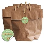 Geschenktüten Set Ostern - vom Osterhasen gebracht- 24 braune Tüten mit 24 matten Papieraufklebern Herz, SET für Ostereier, Süssigkeiten, Plätzchen, Kekse und Geschenke mit 24 Tüten, Miniklammern und Geschenk-Aufkleber